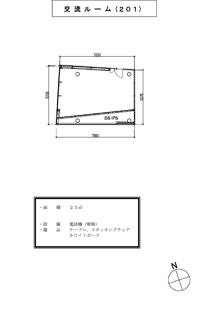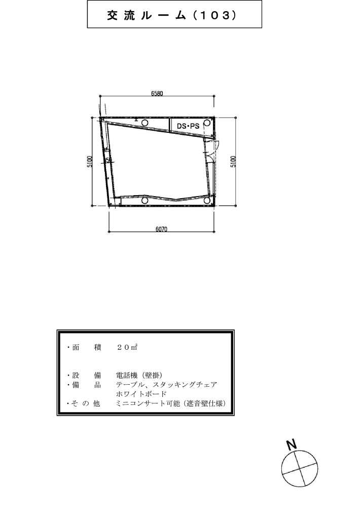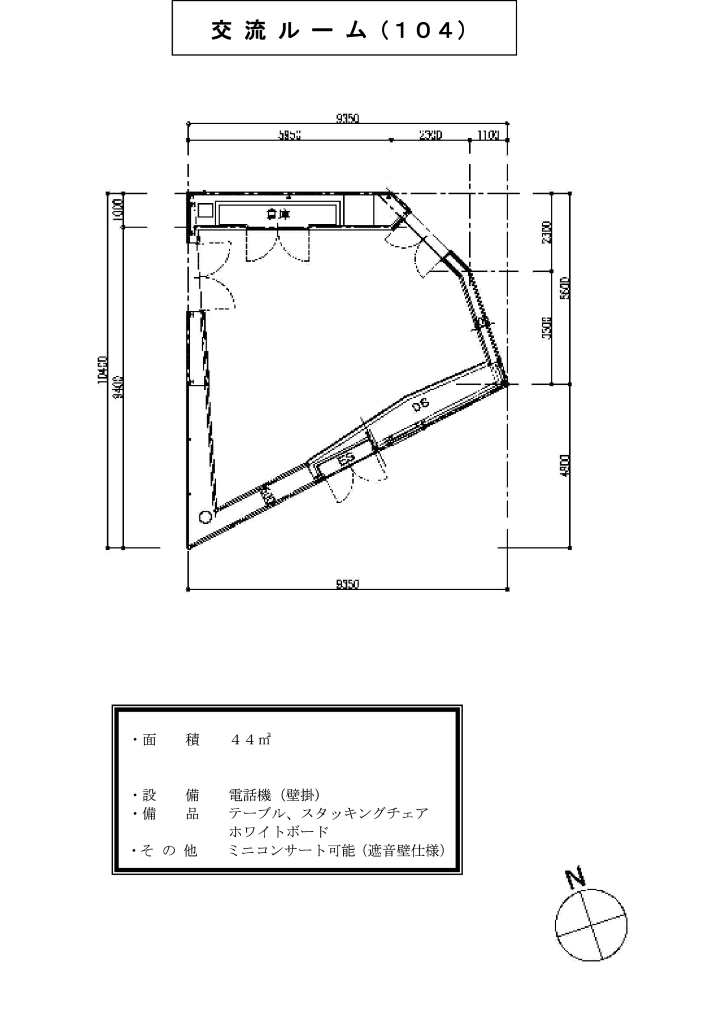 交流ルームの中では一番小さなお部屋の一つです。遮音構造で楽器や歌の練習などにもご利用いただけます。