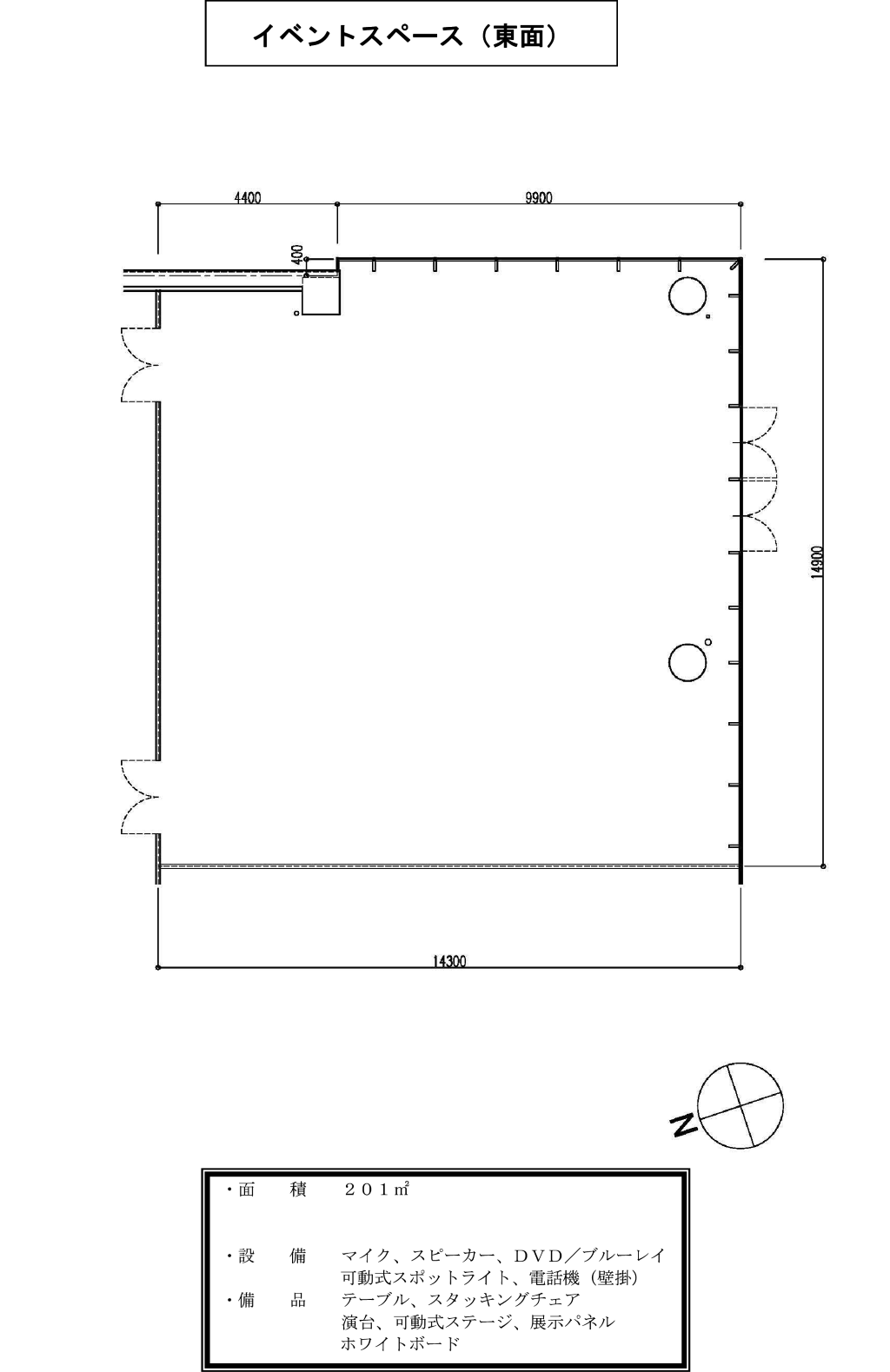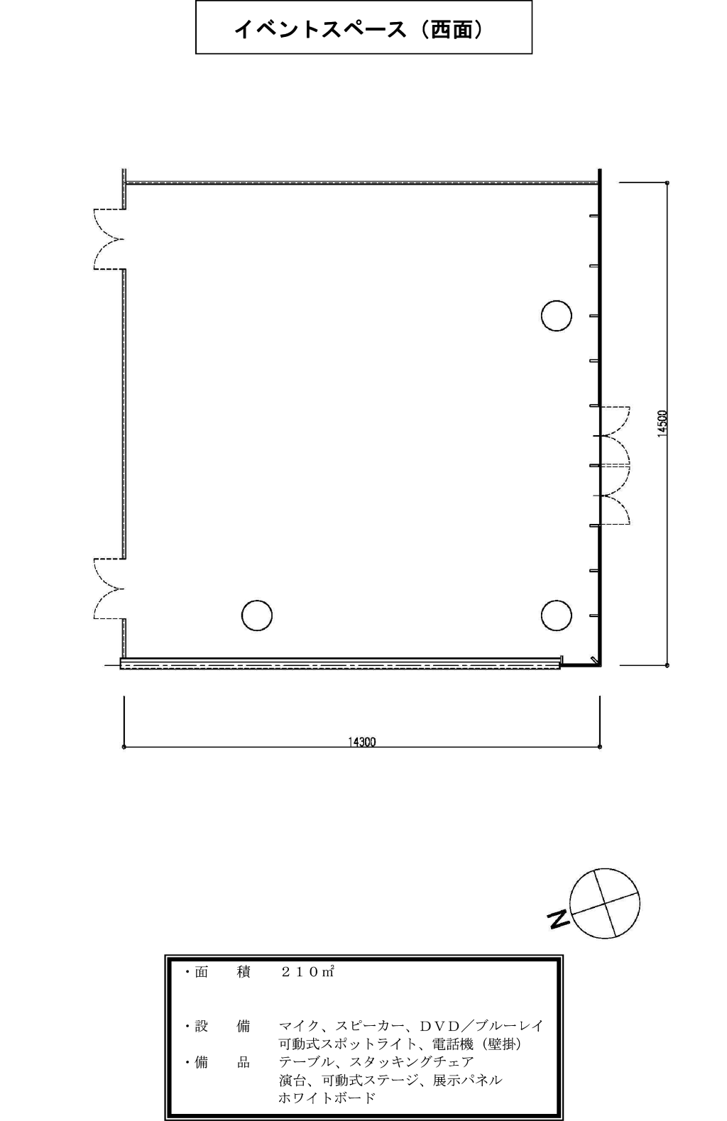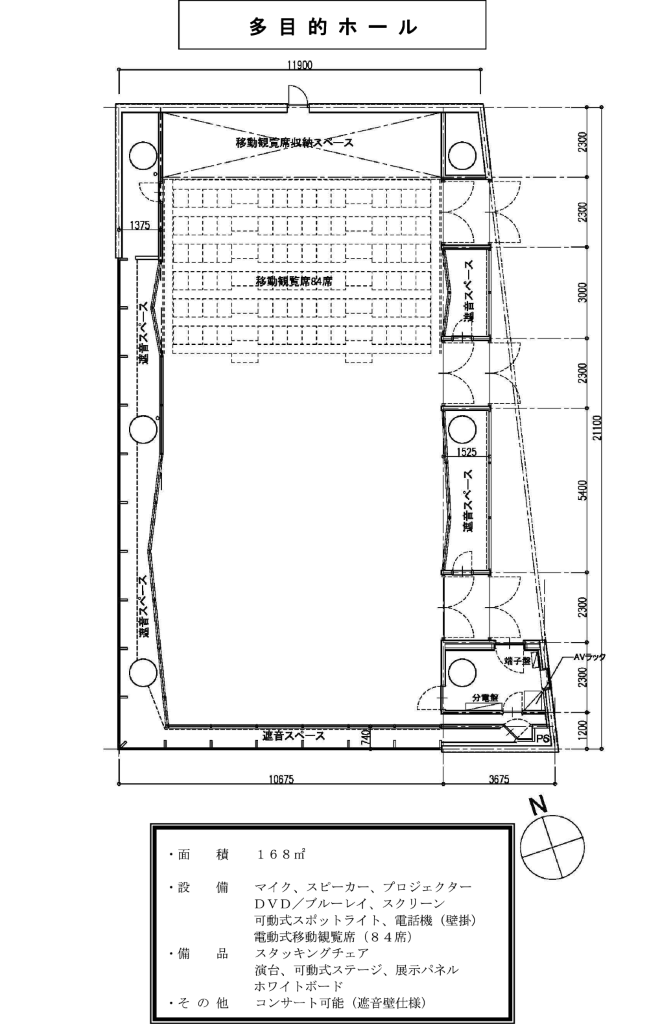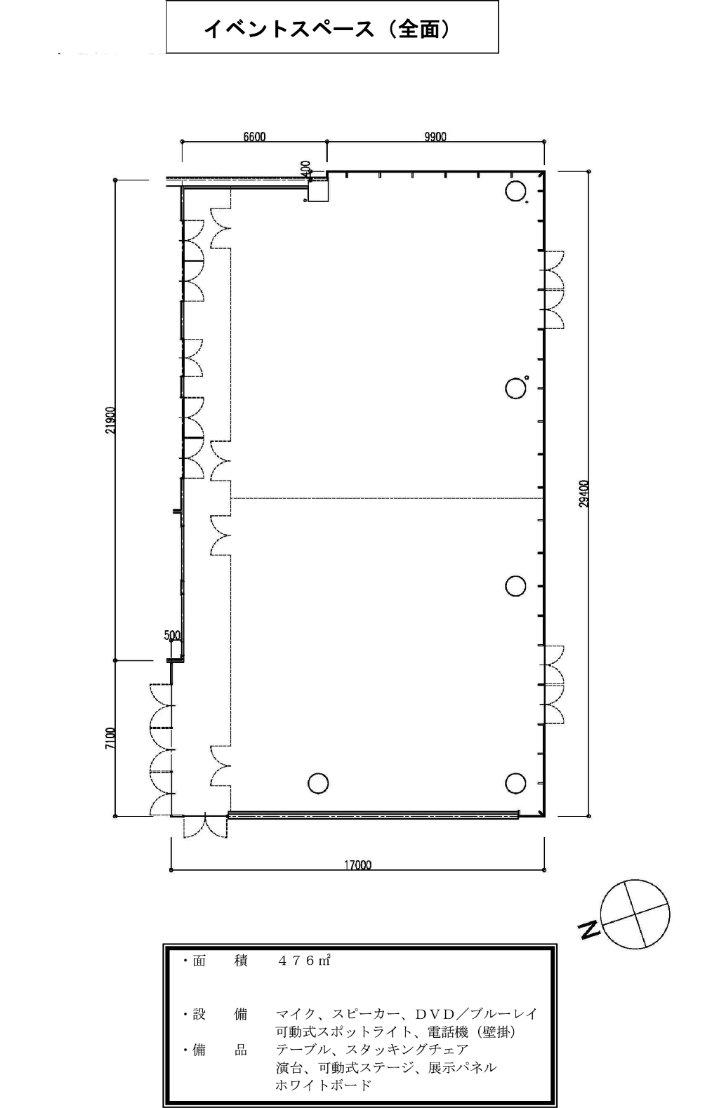 イベントスペース、多目的ホール、交流ルームの各種図面、多目的ホールの断面図がダウンロードできます。※画像jpgファイルは各施設の詳細ページと同ファイル
